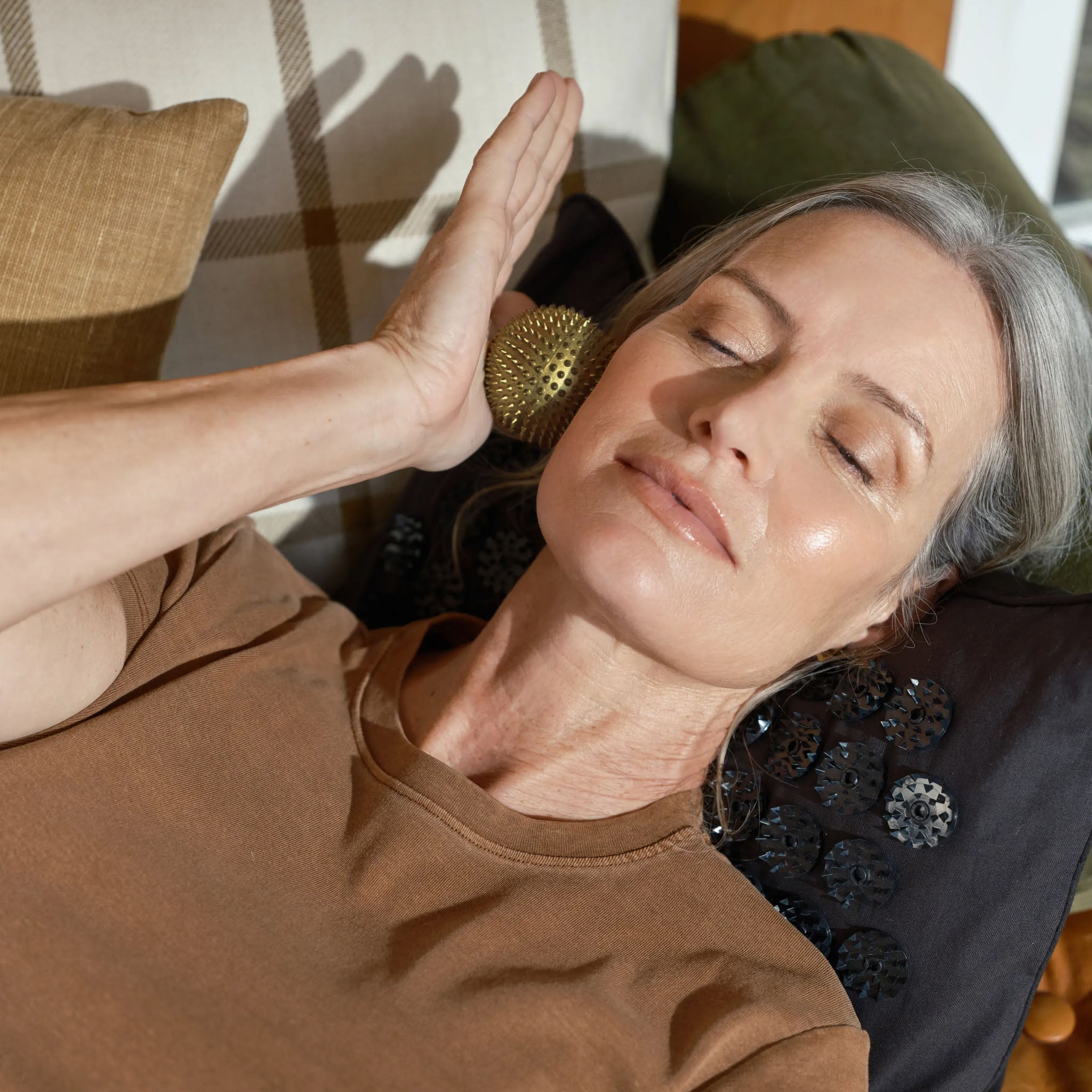 Combining your Shakti Mat with yoga and meditation – either seated or through poses like sphinx and pigeon – incorporates acupressure into your recovery or wellbeing routine.Pillow